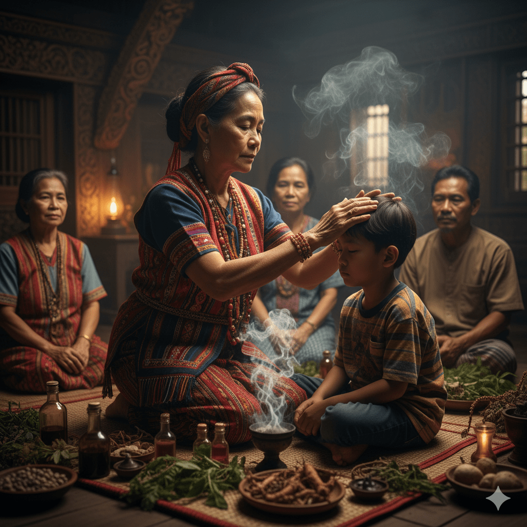 When imbalance occurs, the Maranao turn to Pamomolong—spiritual healers who diagnose illness through dreams, rituals, and cultural wisdom. Their methods include Sanggar (ritual cleansing), Pelimbonen (herbal healing), and Kaphaygo sa Ragat (water purification). These practices restore balance across the cosmological layers.